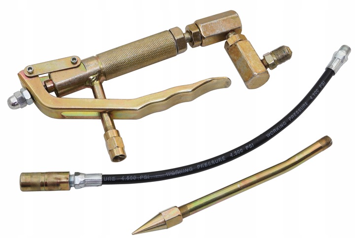 Лубрикатор — це пристрій, який використовується для змащування під тиском механічних елементів, таких як вали, штифти, підшипники, шарніри тощо. Він виготовлений із сталевого циліндра з ємністю 15 л, що забезпечує безперервну та ефективну роботу. Все це зроблено з високоякісних матеріалів, стійких до тривалого впливу жиру та масла. Всі ущільнення і клапани виготовлені з найвищою точністю і дозволяють працювати при тиску до 40 МПа. У набір входять два наконечники, жорсткий і гнучкий, які підходять для більшості палиць каламіті. Колеса гарантують мобільність і зручність транспортування.