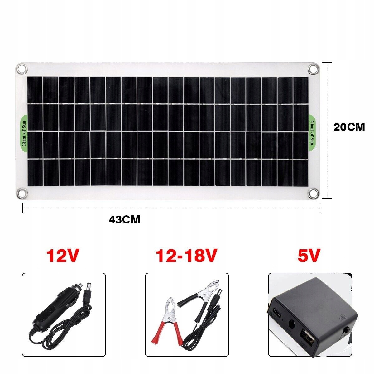 назва: сонячна панель 50 Вт регулятор 30А 2 затиску 1 запальничка 4 присоски