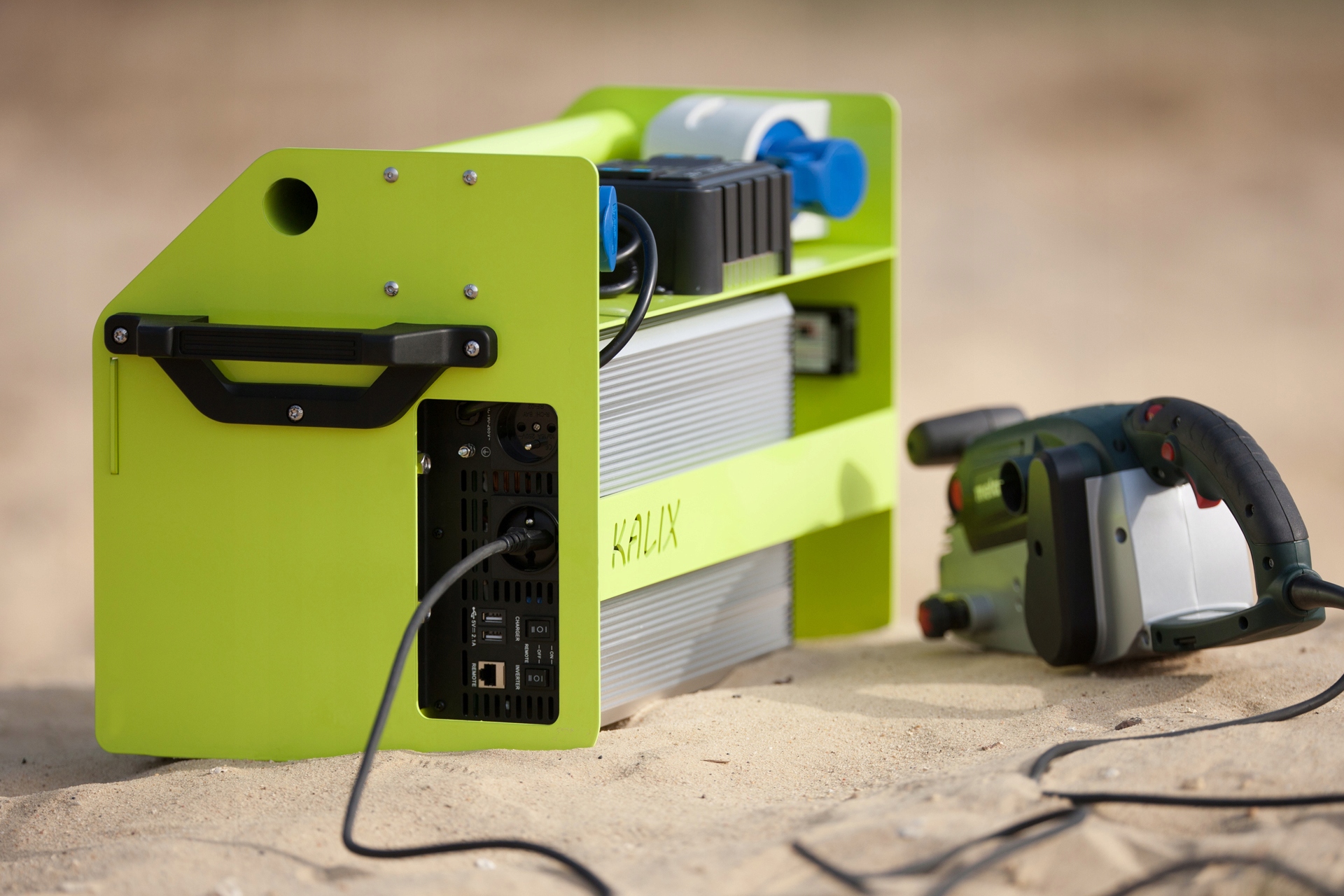 конфігурація пристрою дозволяє використовувати його в якості сонячної електростанції або в якості типового банку енергії, циклічно заряджається від електромережі за допомогою вбудованого зарядного пристрою, що живиться від напруги 230 В.