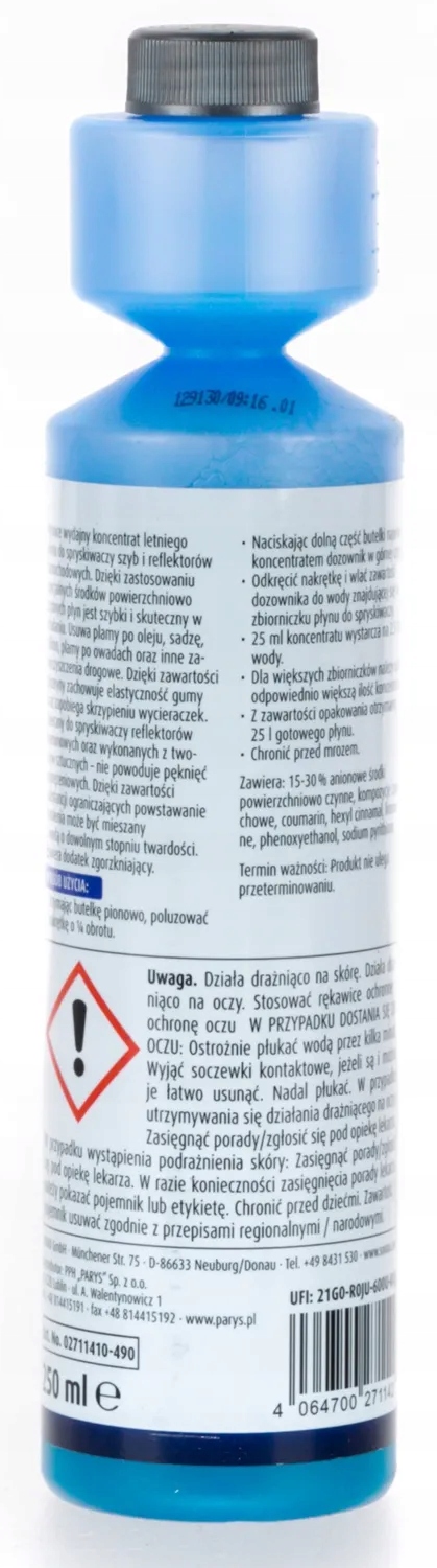 надзвичайно швидко видаляє зі скла шари бруду і жиру, що обмежують видимість. Завдяки новій формулі він ще більш ефективно видаляє комах. Згладжує мікроскопічні нерівності на поверхні скла, полегшуючи стікання води під час руху.