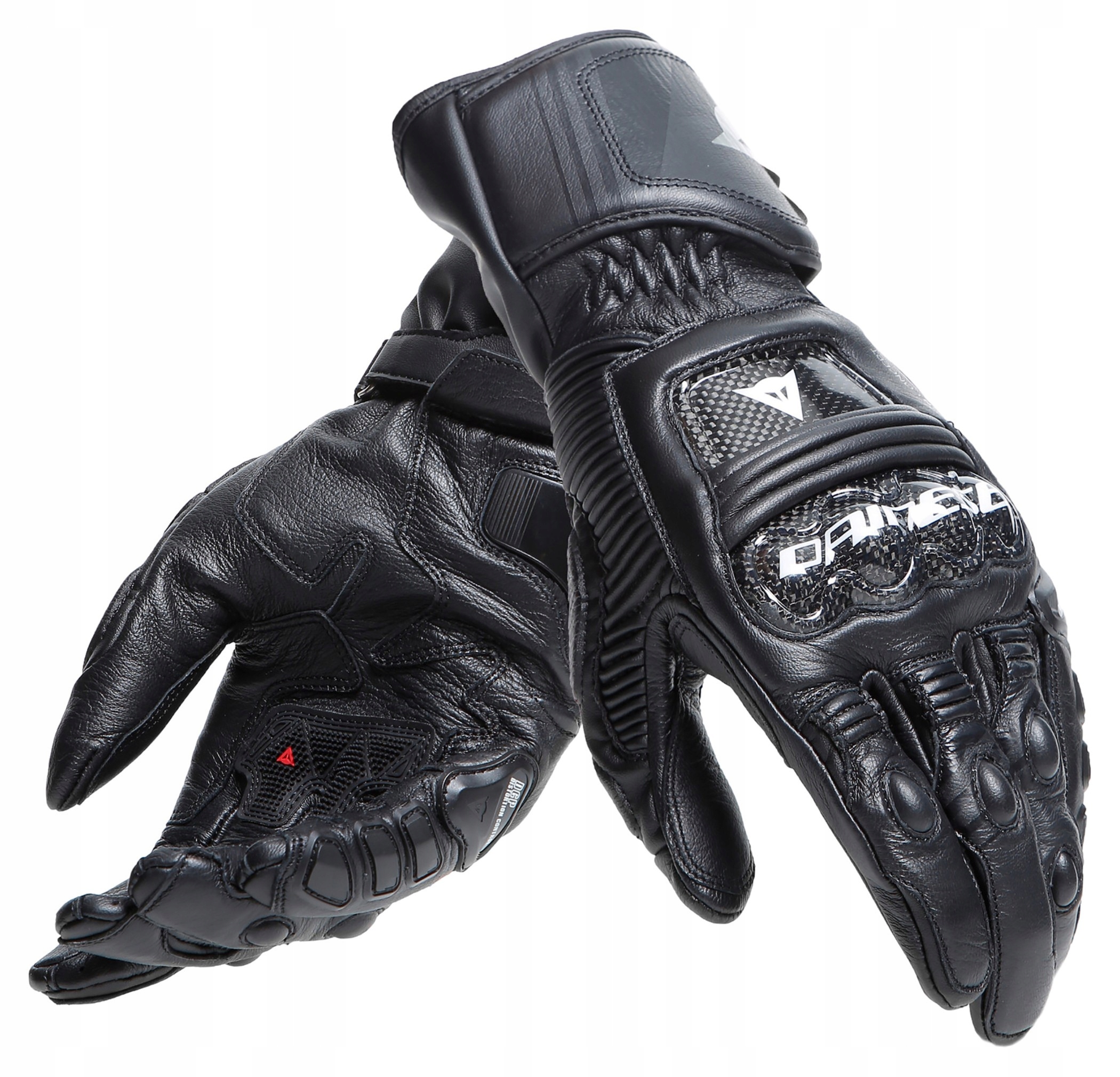 Шкіряні гоночні рукавички Dainese Druid 4 є вираженням найвищих стандартів захисту, створених для максимальної продуктивності на трасі та на дорозі. Безпеку та ергономічність мотоциклетного чемпіонату світу гарантують попередньо сформований, термоформований вал, карбонові вставки на кісточках пальців і тильній стороні кисті, термопластичний захист мізинця. Поліуретанові вставки на зап'ястях і пальцях гарантують максимальну міцність, 4-стороння гнучкість забезпечує чудовий комфорт і ідеальну посадку кожен раз.