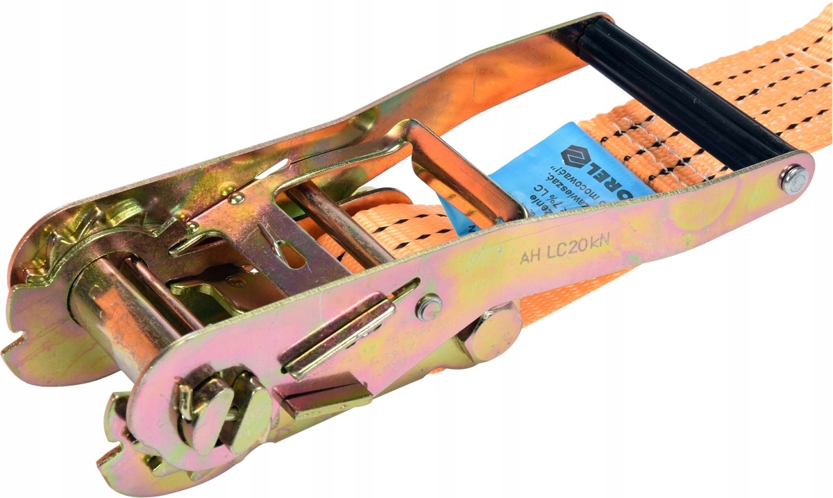 натяжний ремінь з натягувачем, призначений для кріплення багажу. Щільне переплетення гарантує надійне і стабільне утримання вантажу під час транспортування. Не використовуйте для підвішування.