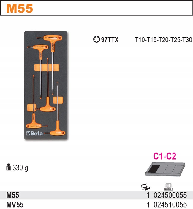 кутові оправні Ключі профіль Torx, з рукояткою T10-T15-T20-T25-T30 Beta 97ttx
