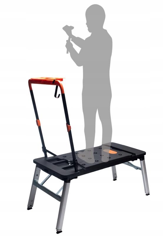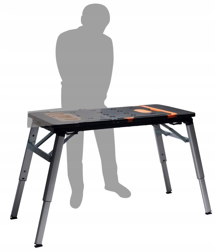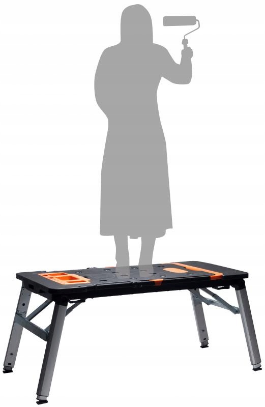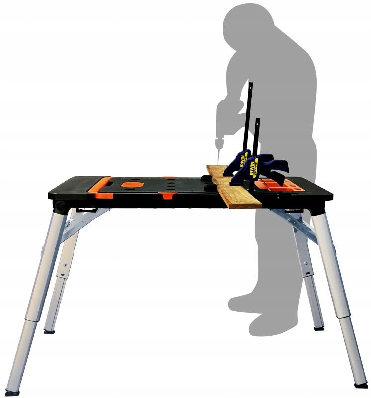 має велику робочу поверхню, яка спрощує розпилювання і свердління. Збоку є вбудована розетка для живлення. Його можна використовувати в якості стабільних лісів або робочого майданчика. У комплект входять ролики, завдяки яким стіл перетворюється на візок. Він буде використовуватися на складах, в магазинах, майстернях і скрізь, де є необхідність в транспортуванні різних видів товарів. Він також має функцію крісла для майстерні для використання в автосервісах, ремонтних майстернях, автосервісах, а також серед майстрів. Його можна скласти у форму валізи, яку легко зберігати та транспортувати.е>