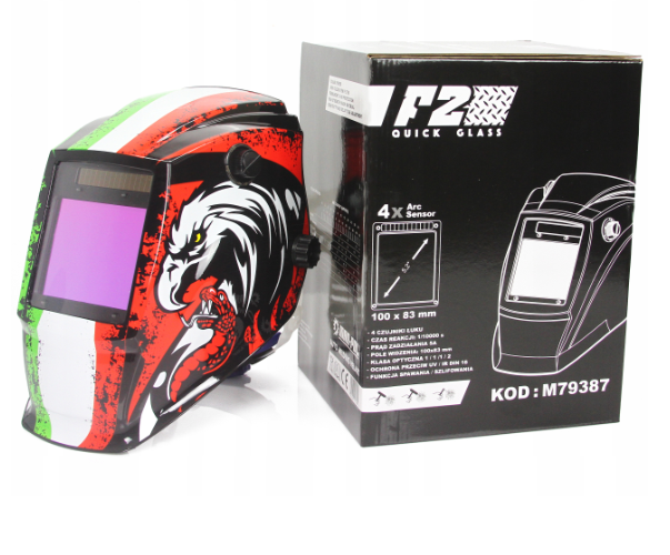зварювальний шолом зі спеціальним зварювальним фільтром, призначений для більшості зварювальних процесів m.in.
