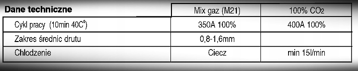 робочий цикл (10 хв/40°C): 400A 100%