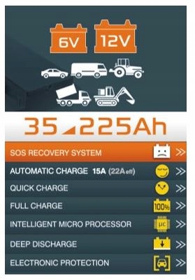 - Batium оснащений спеціальною функцією для сульфатованих акумуляторів, які не можуть заряджатися стандартним струмом. Опція SOS RECOVERY має спеціальний цикл зарядки, призначений для регенерації акумуляторів даного типу