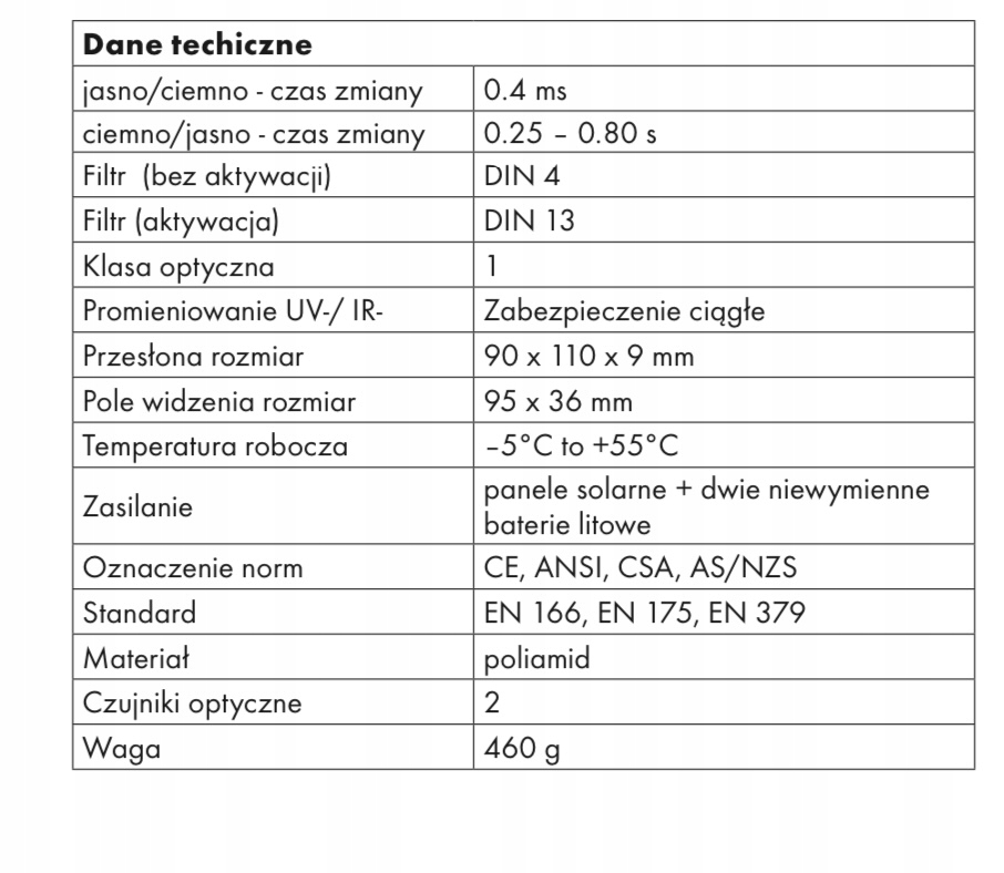 шолом з автоматичним затемненням в діапазоні від DIN 9 до DIN 13