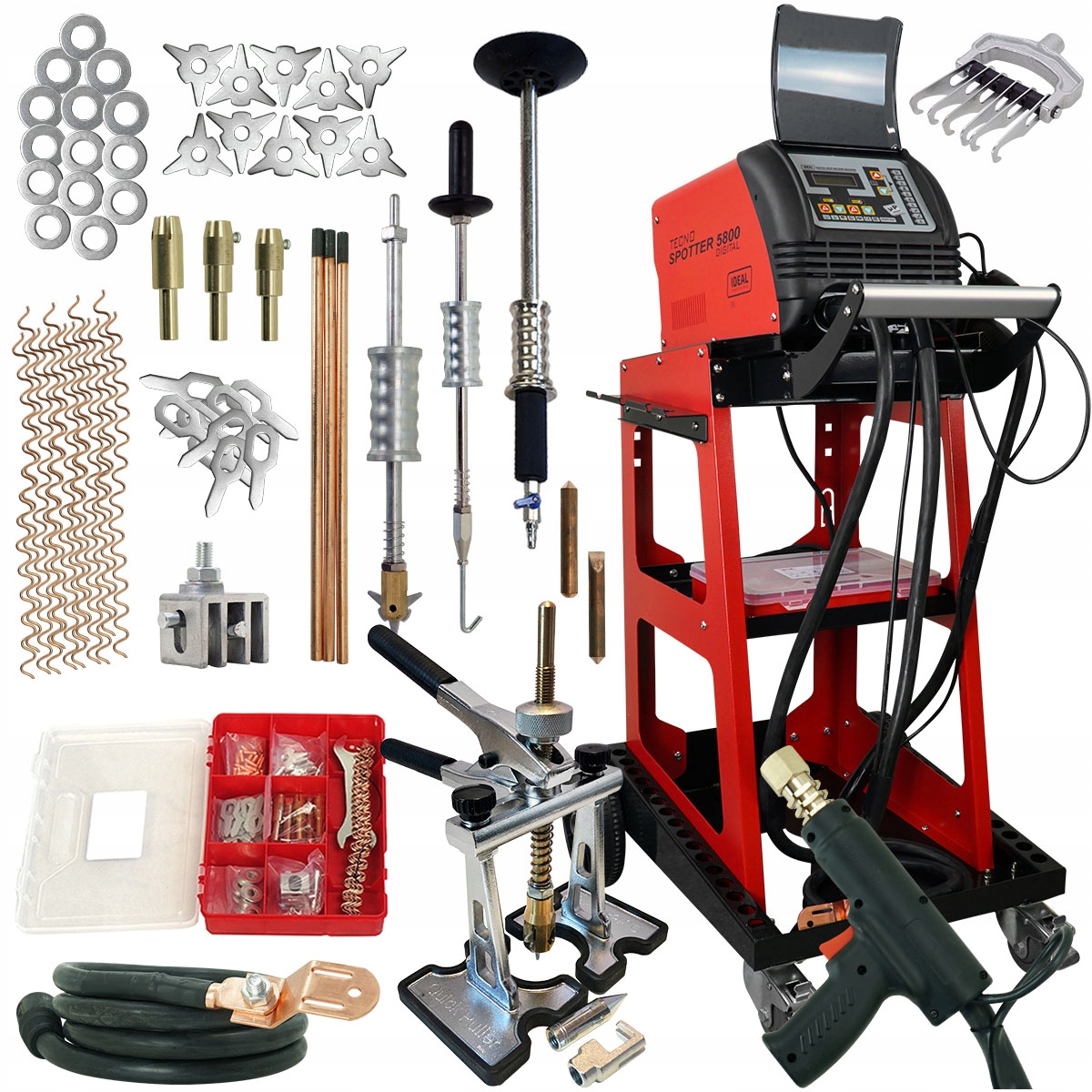 TECNOSPOTTER 5800 - це професійне обладнання для видавлювання, одностороннього зварювання, виправлення та нагрівання вуглецевим електродом листового металу. Рекомендується, зокрема, для ремонту кузова автомобіля. Користувачі, які придбали Spoter відповідно підтверджують, що це була хороша інвестиція, яка швидко окупилася більш ніж.