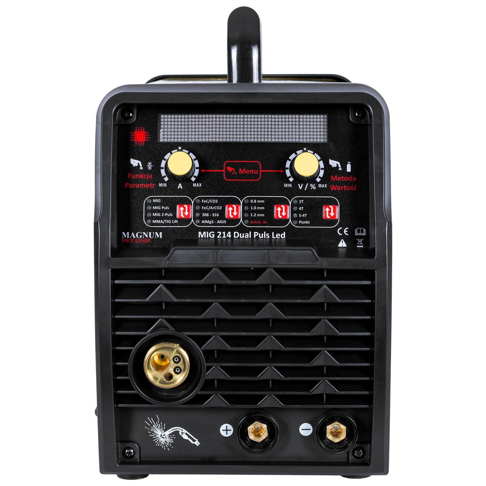 Magnum в даний час є лідером у виробництві пристроїв з подвійним Імпульсом, а MIG 214 Dual PULS LED - одне з найцікавіших і новітніх пропозицій. Це вдосконалена версія зварювального апарату, яка була першою, яка мала можливість зварювання з подвійним імпульсом. Зварювальний апарат має велику кількість високотехнологічних функцій, що безпосередньо призводить до високої якості зварювання.