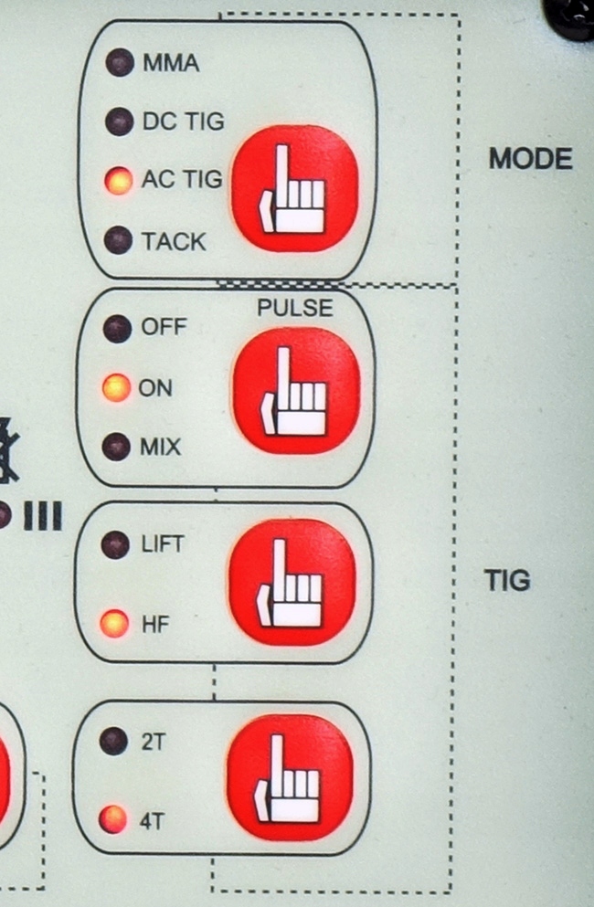 зварювання постійним струмом постійного струму з імпульсом або без нього. При виборі режиму імпульсного зварювання користувач має можливість регулювати всі ключові параметри імпульсу.