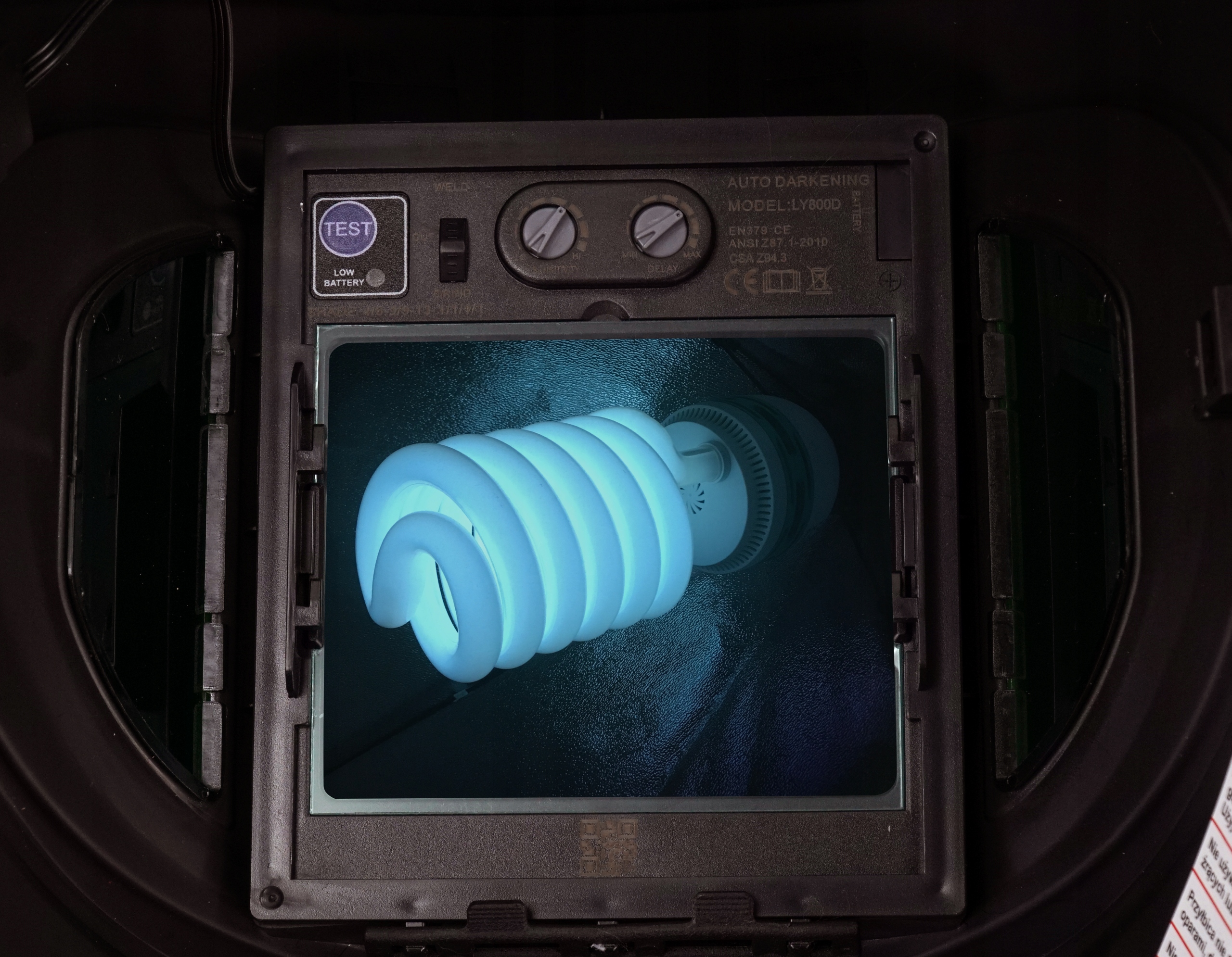 при запалюванні дуги прозорий фільтр в касеті потемніє. Після виключення лука він знову освітлиться. Козирок забезпечує захист від УФ / ІЧ-випромінювання (ультрафіолетове / інфрачервоне) також, коли фільтр прозорий. існує можливість регулювання затемнення в залежності від моделі.