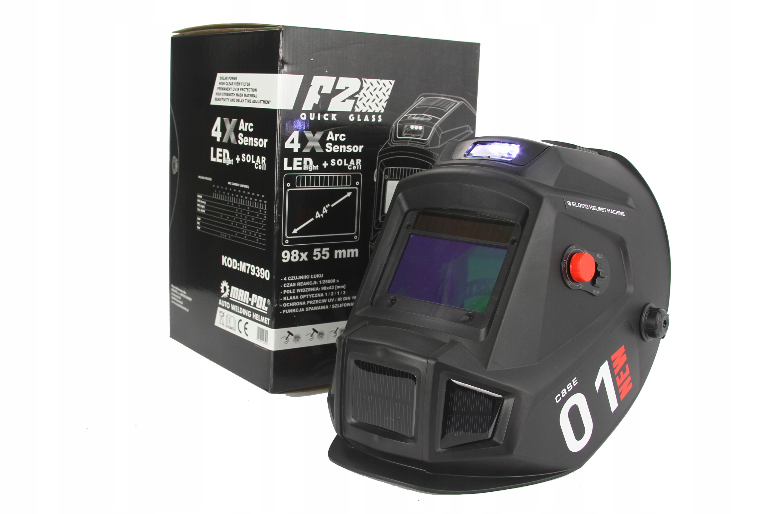 захищає користувача від шкідливих випромінювань, що утворюються під час зварювання, а також від іскор і відколів. Спеціальний датчик, поміщений в фільтруючий картридж, автоматично визначає початок процесу зварювання, викликаючи функцію самозатемнення.після завершення роботи фільтр автоматично повертається в стан освітлення.фільтр живиться від внутрішніх батарей, які заряджаються самостійно через сонячні елементи.
