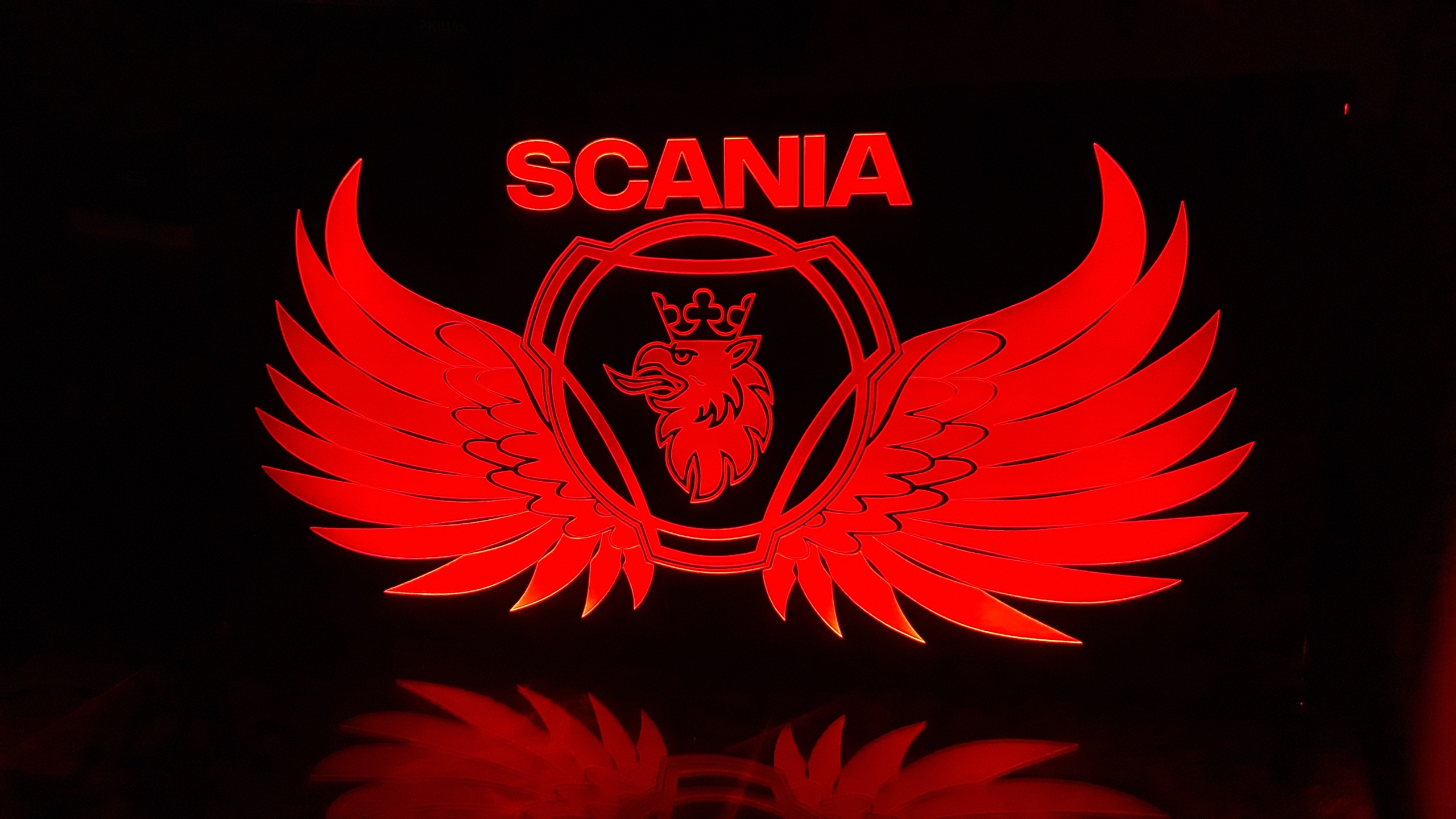 табличка для водія ззаду, над ліжком з логотипом Scania!