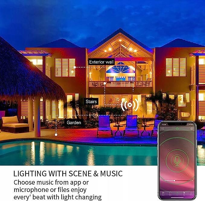 Інтелектуальне управління додатком: додаток Bluetooth управляє інтелектуальним світлодіодним прожектором, повністю контролює освітлення за допомогою програми; створіть романтичну, розслаблюючу атмосферу вечірки з музикою і функцією мікрофона. Функція таймера може вмикати світло в будь-який час і тримати вас відповідно до вашого розкладу.