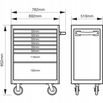 - Розміри візка: 952 x 510 x 782 мм