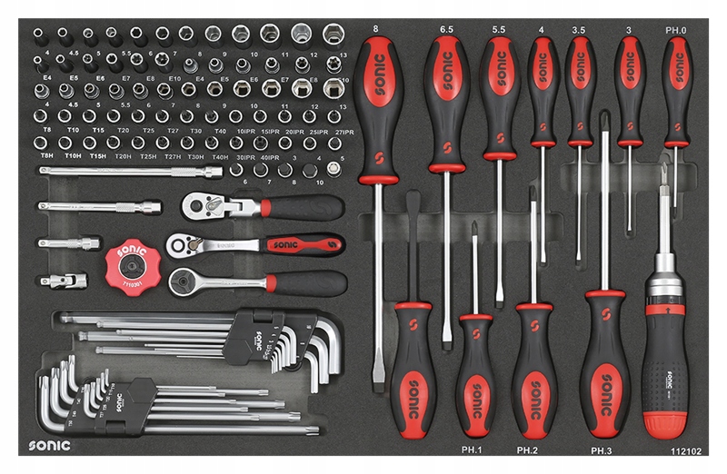 візок для інструментів чорного кольору з 7 ящиками, оснащений 284 інструментами. Компанія SONIC < /B > є досвідченим дизайнером і виробником ручних інструментів для систем візків для інструментів. Вона завоювала відмінну репутацію в області інструментів, використовуваних в автомобільній промисловості, завдяки виключно високій якості своєї продукції