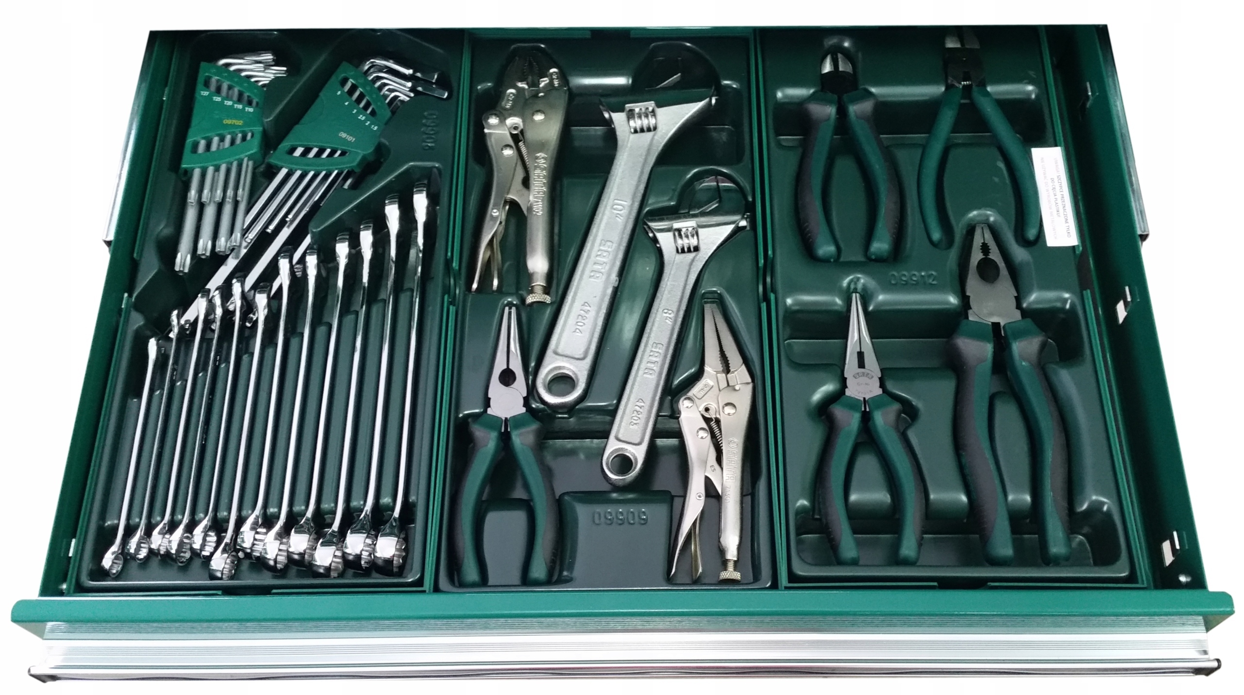 гайкові ключі 8/9/10/11/12/13/14/15/16/17/18/19 гайкові ключі имбусы з кулькою довгі: 1,5/2/2,5/3/4/5/6/8/10 торцеві ключі torx: від T10 до T505 розвідних ключів і плоскогубців 09909