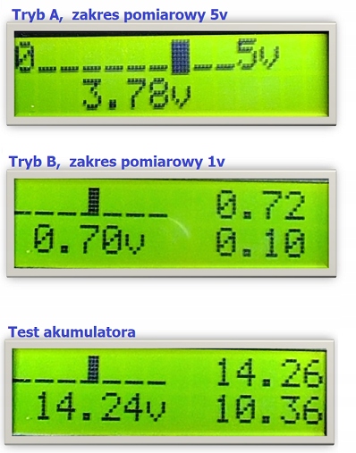 Тестер дозволяє вимірювати цирконієві (вихідний сигнал 1 В) і титанові (5 В) лямбда-зонди. Два діапазони вимірювання 1 В / 5 В. Автоматичний вибір діапазону на основі вимірюваного сигналу. Кожен з трьох потенціометрів з'єднаний з перемикачами. У положенні 0 В перемикач вимкнено, і канал діє як лічильник. Після повороту потенціометра вище 0 В включається перемикач і на лямбда-зонд подається регульована потенціометром напруга, яка заглушає сигнал від датчика і розпізнається ЕБУ як багата або бідна суміш. Наприклад, коли ми встановлюємо потенціометр на 0,2 В, ця напруга буде подаватися на контролер ECU і буде розпізнано як бідна суміш. Контролер ECU постійно намагатиметься збагатити дозу палива. Коли ми вимикаємо перемикач через 30 секунд (встановлюємо потенціометр на 0 В), напруга прямо з лямбда-зонда буде подаватися на комп’ютер. Ця напруга буде близько 0,8 В (суміш збагачувалася протягом останніх 30 секунд), поки контролер не вирівняє оптимальний склад суміші. На вході вимірювання використовується підсилювач з вхідним опором понад 1 Мом. Тестер мінімально навантажує лямбда зонд і точно не впливає на роботу зонда.