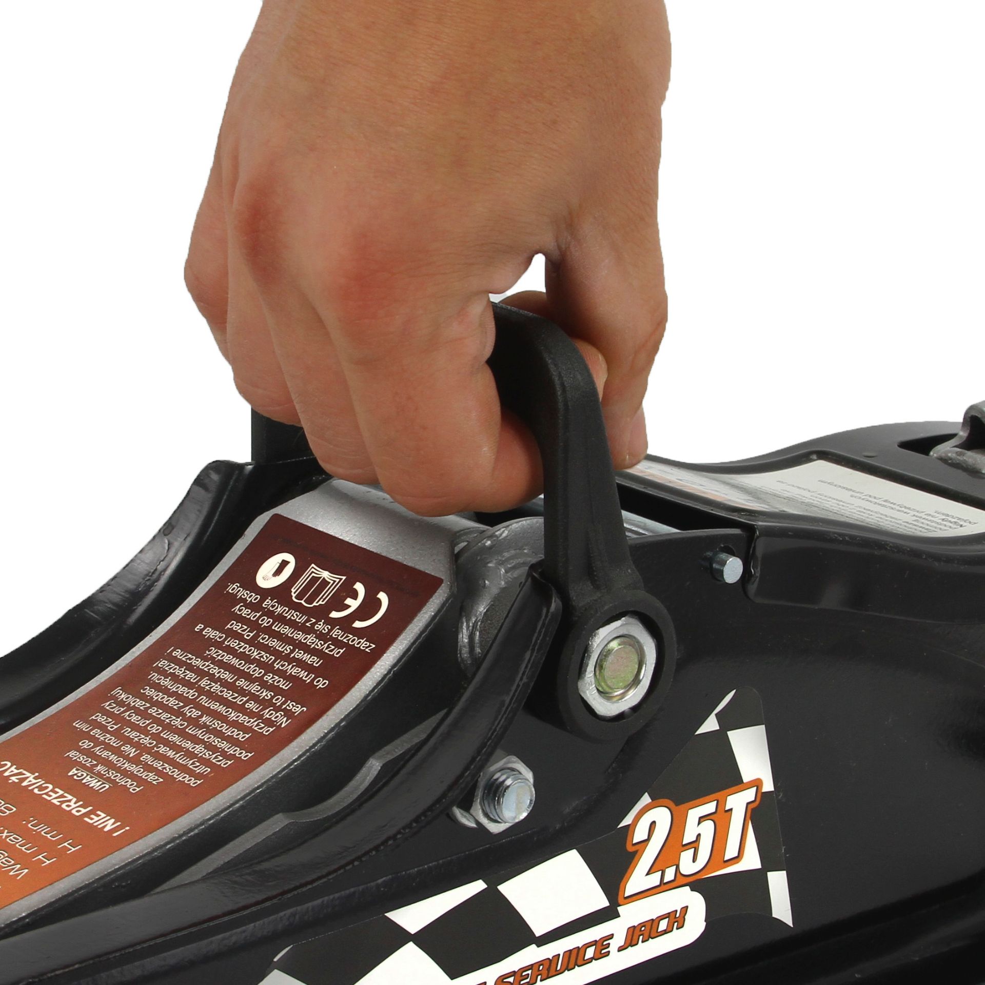 домкрат оснащений рукояткою, що полегшує переміщення домкрата, що виключає ризик випадкового падіння і полегшує маневрування під автомобілем.