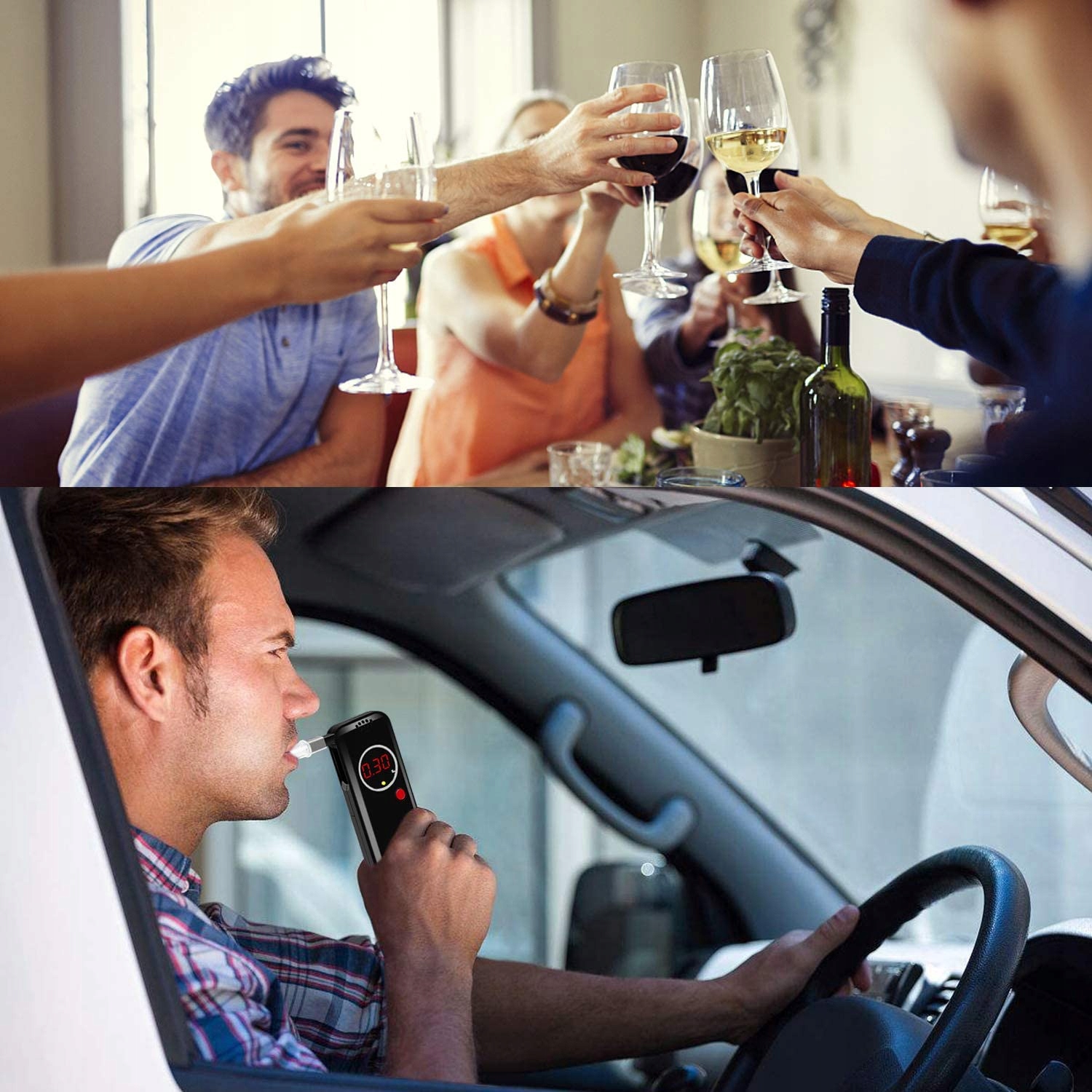 звуковий сигнал: коли концентрація алкоголю ≥0,5‰BAC, на екрані на РК-дисплеї з'явиться символ "червоне світло", і буде звучати звуковий сигнал. Видається безперервний звук, що нагадує користувачеві, що він п'яний.