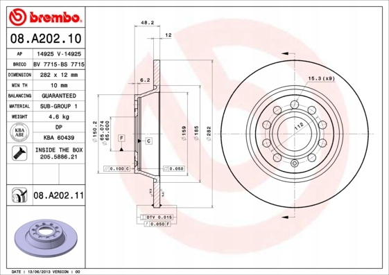 - зовнішній діаметр:282 мм