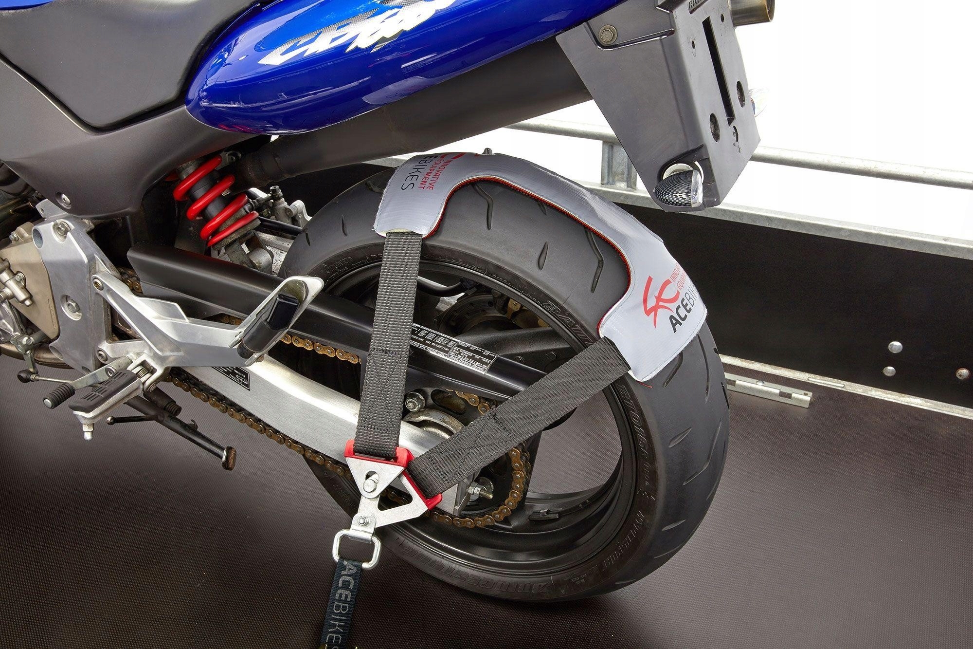 Дивовижно, наскільки прості деякі рішення - і наскільки блискучі Наприклад, рішення TyreFix Basic від Acebikes знає, що транспортний засіб повинен бути прикріплений до вантажної поверхні причепа або транспортера! бути знерухомленим, щоб мотоцикл не звільнився під час раптового гальмування або рушання з місця, а стояв безпечно. І це завдання транспортної системи безпеки TyreFix Basic. заднє колесо, а потім закріпіть за допомогою відповідних натягнутих ременів. З боку контакту з шиною TyreFix Basic оснащений спеціальним матеріалом для зчеплення, тому шина не ковзає. Мотоцикл захищений.