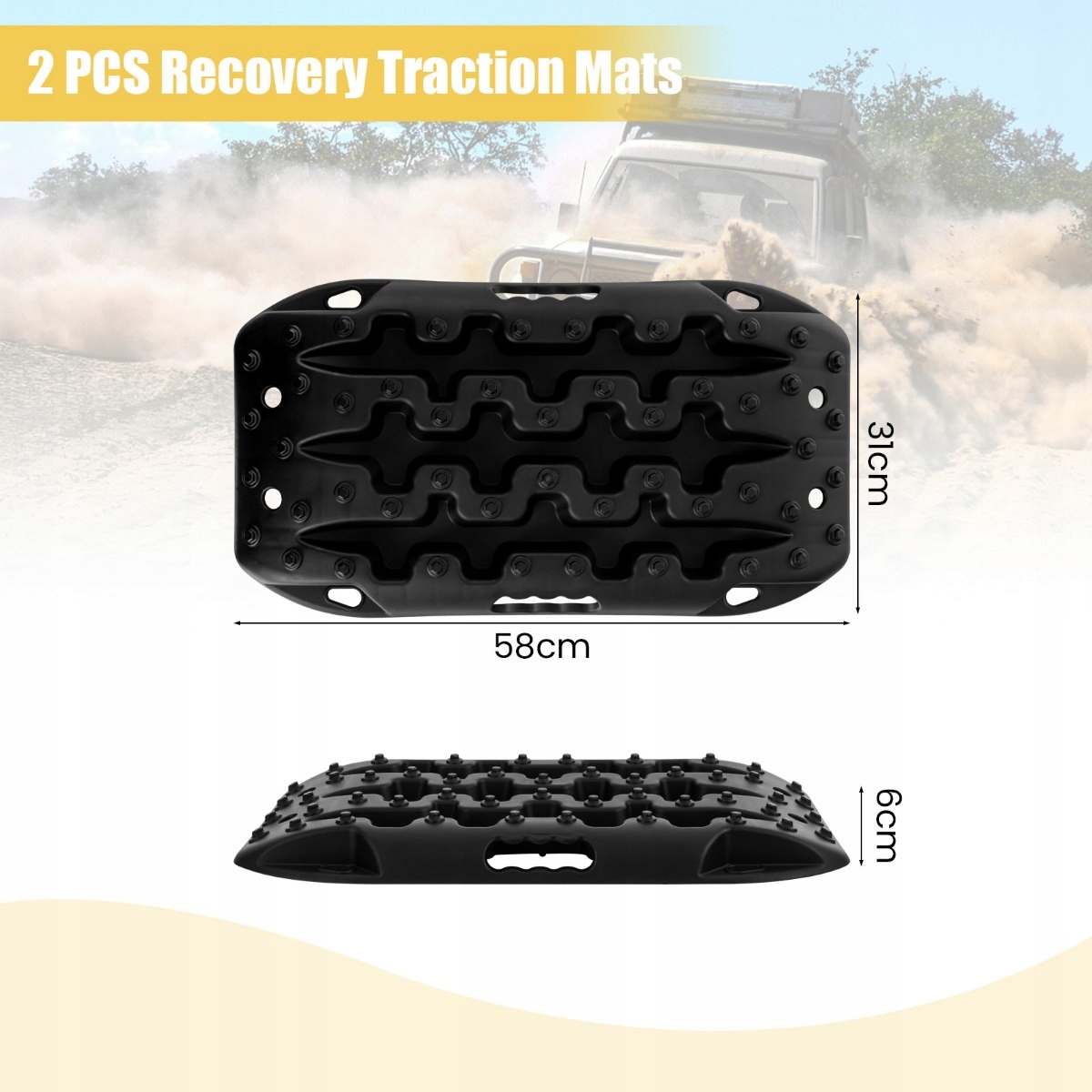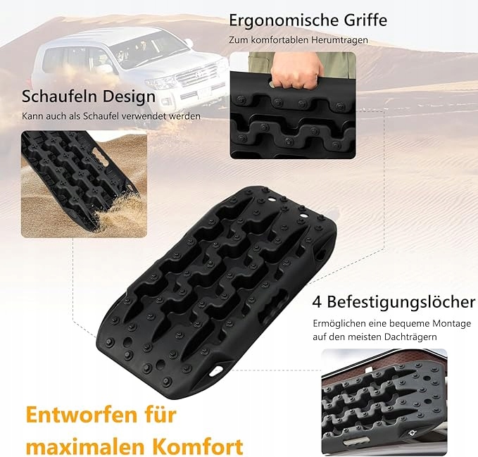 Незалежно від того, застрягли ви в багнюці, снігу чи піску, ці тягові килимки готові впоратися з будь-яким викликом. Ідеально підходить для легкових автомобілів, позашляховиків, вантажівок і позашляховиків. Безпечний старт за будь-яких умов!