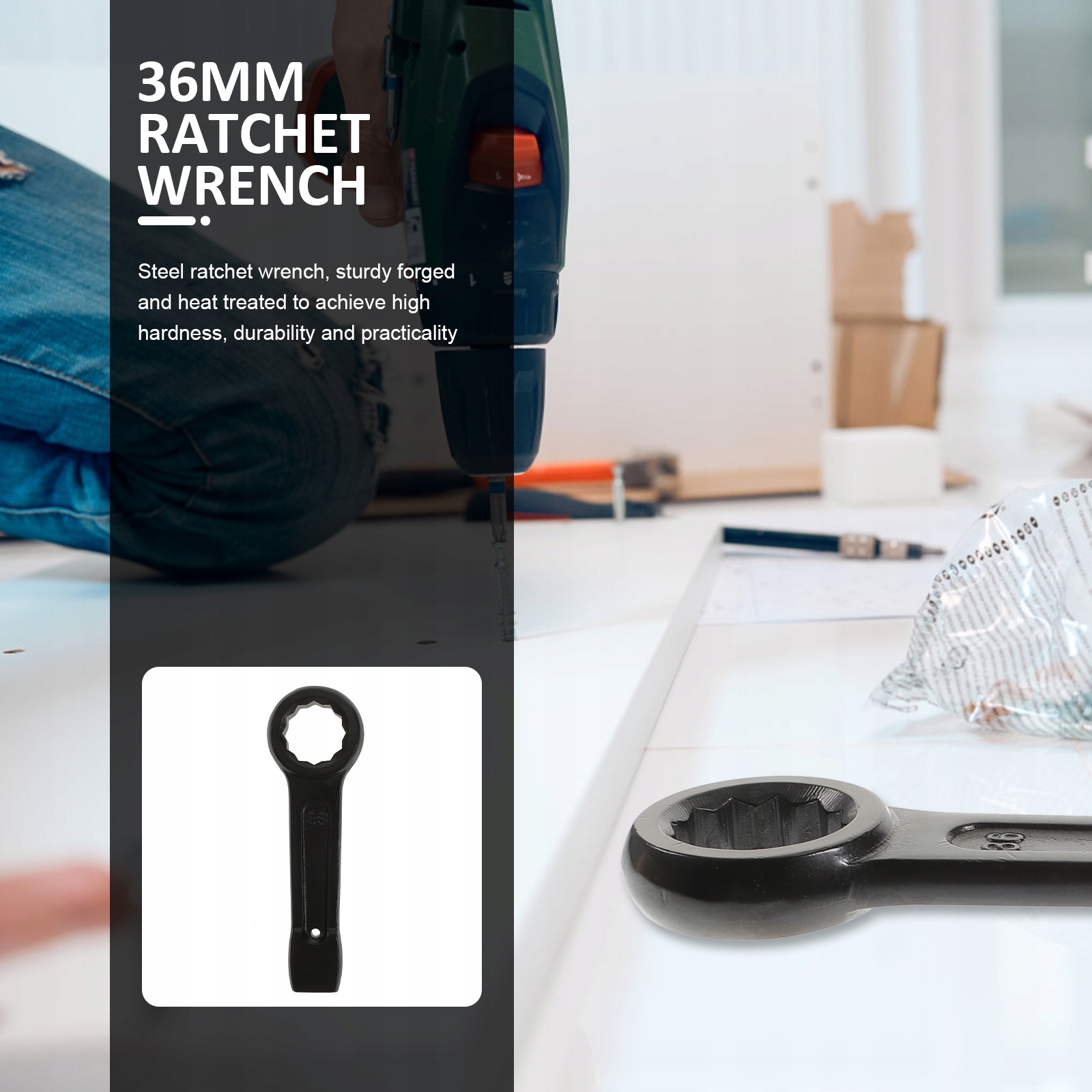 трещоточный ключ, простий у використанні, Підходить для невеликих приміщень, легкий, легко тримати, використовувати і зберігати.