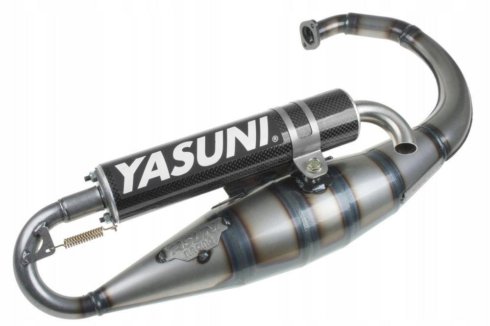 гоночний вихлоп дуже відомої і шанованої іспанської компанії Yasuni. Більш потужний вихлопної брат Ясуні з, з більшою ємністю резонансної камери і великим діаметром. Ідеально підходить для більш потужних циліндрів рівня Sport, Midrace і Racing. Відмінна майстерність. Відмінні характеристики і продуктивність. Підпружинене кріплення вихлопного наконечника. Наконечник виготовлений з чорного вуглецю. у комплекті з вихлопом Yasuni R Ми поставляємо повне кріплення, болти і прокладки.