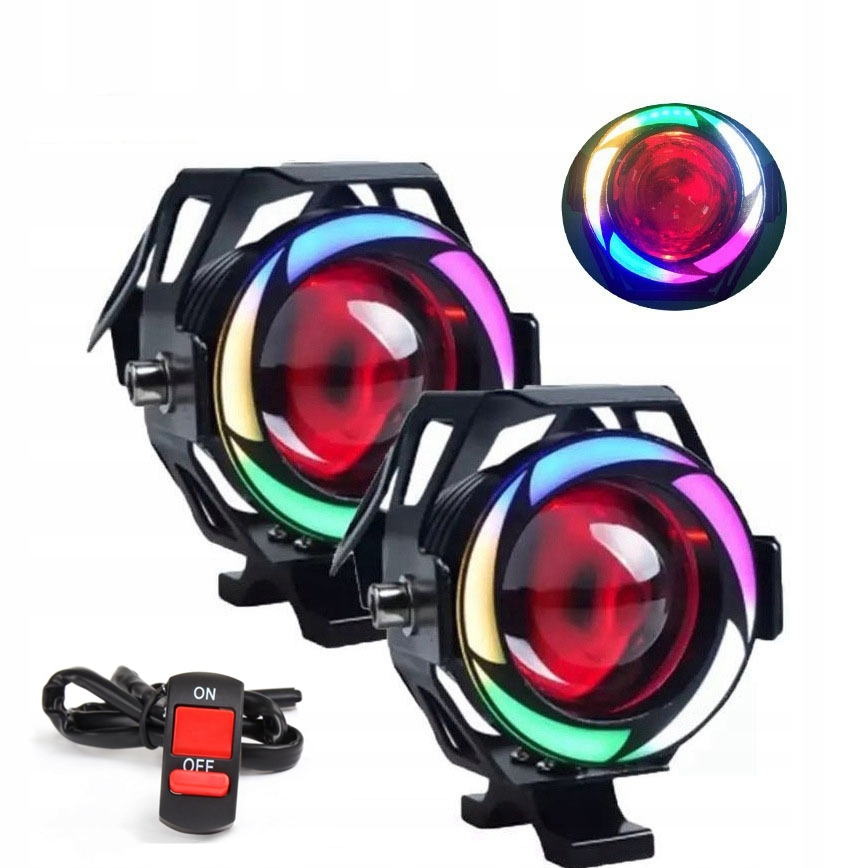 мотоциклетні світлодіодні фари дальнього і ближнього світла, кольорові фари DRL RGB, світлодіодні ангельські оченята, налобний ліхтар, мотоциклетна лампа