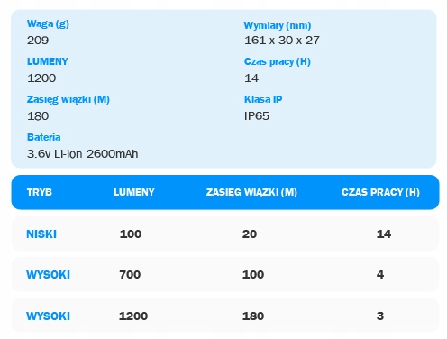 - Завдяки високоякісному світлодіодному підсвічуванню 1200 люмен ліхтарик забезпечує яскраве та чітке освітлення.