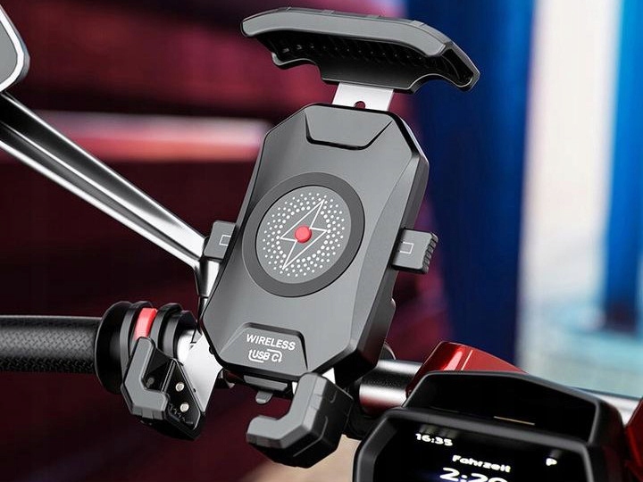 ручка R15W-PD-це, перш за все, зручність і безпека! Крім того, це поєднання тримача телефону з індуктивним зарядним пристроєм і швидкою зарядкою USB Type-C. індуктивний тримач R15w Wireless-PD універсальний і заряджає телефони незалежно від їх моделі і виробника. Автоматична система затиску рук і кнопки, розташовані в центрі рукоятки, дозволяють швидко, легко і дуже зручно вставляти і виймати телефон навіть однією рукою.е>