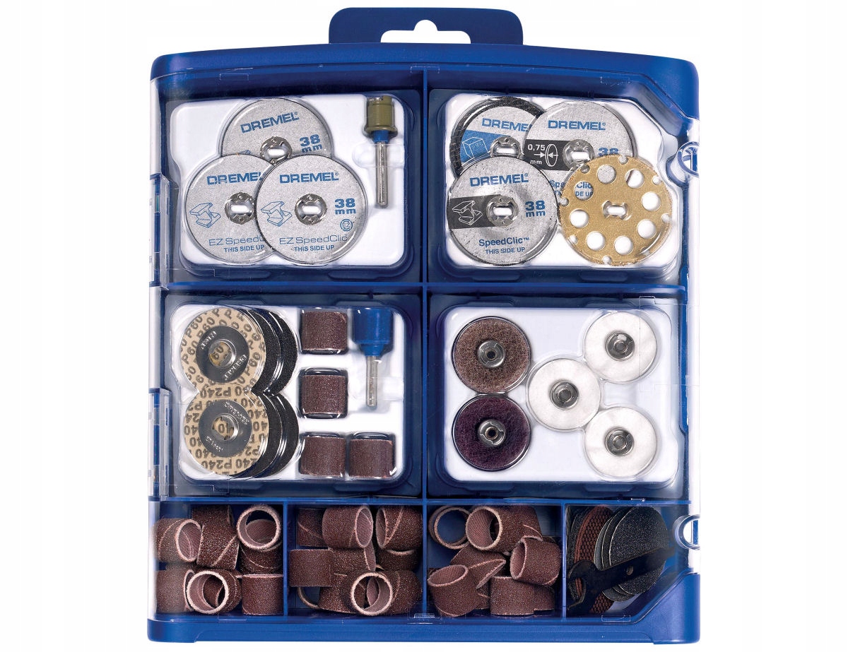 Універсальний набір аксесуарів EZ SpeedClic містить 70 високоякісних оригінальних аксесуарів Dremel, включаючи аксесуари EZ SpeedClic, які можна швидко та легко замінити.