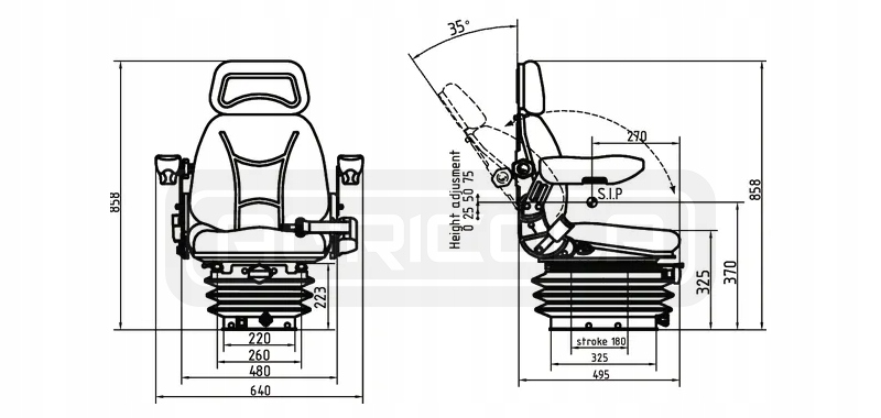 Універсальне сидіння з підлокітником, поділеним на трактори та машини