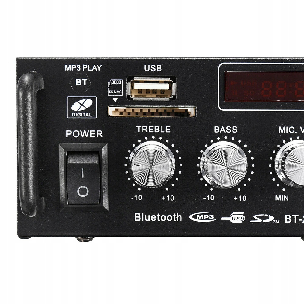 автомобільний ресивер, HiFi стерео підсилювач 12V/230vпідсилювач потужності з пультом дистанційного керування 12V,адаптер живлення 230v безкоштовно,вхід USB + MMC кард-рідер,імпеданс динаміка 4-8Ωпікова потужність 300 Вт +300 ВтBluetooth HiFi