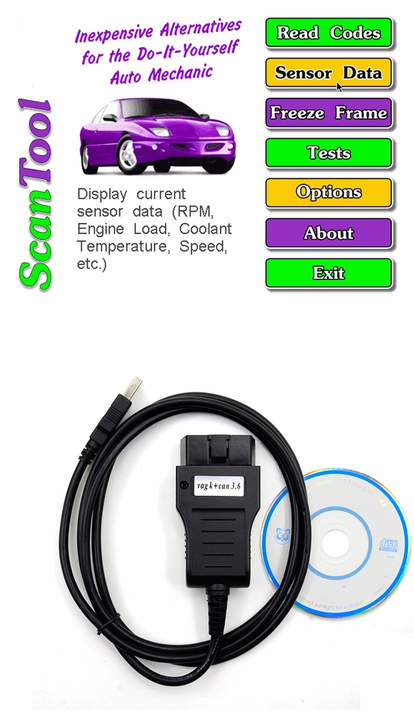 Інтерфейс VAG K+CAN COMMANDER версії 3.6 призначений для діагностики та програмування електронних компонентів, що використовуються в автомобілях Volkswagen, Audi, Seat , Skoda, Porsche.