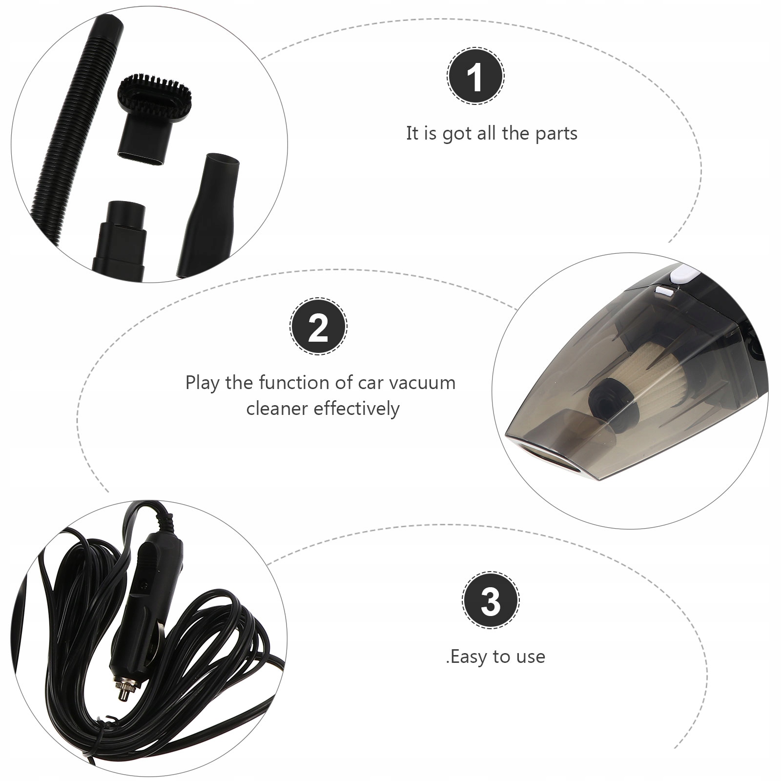 - Great for cleaning crumbs,,, hair, coins, melon, sand, husk, stains in your car, and let you have a clean and sanitary driving environment.
