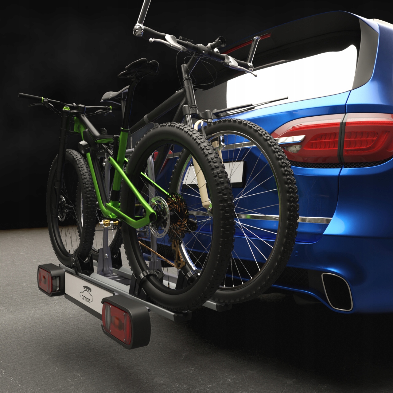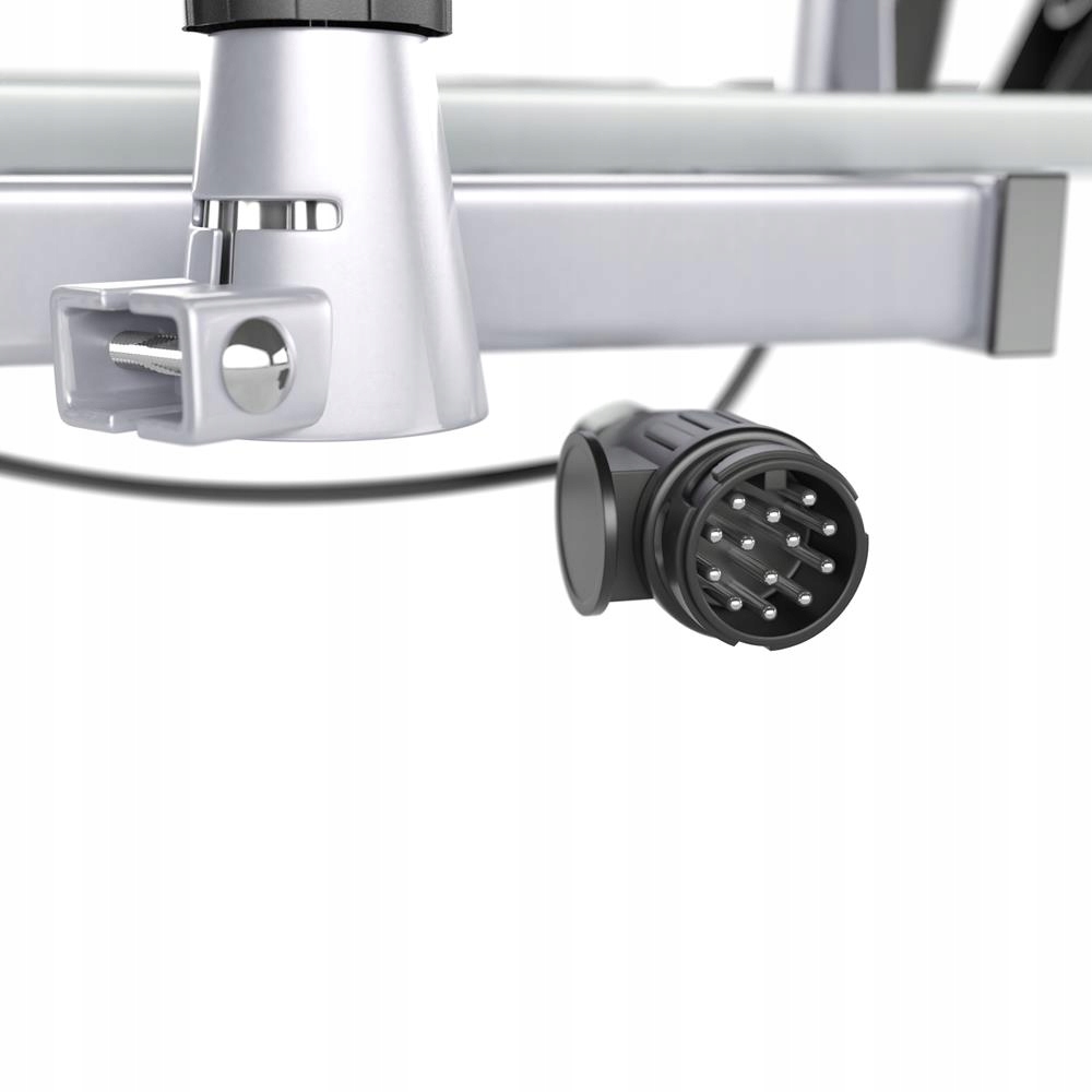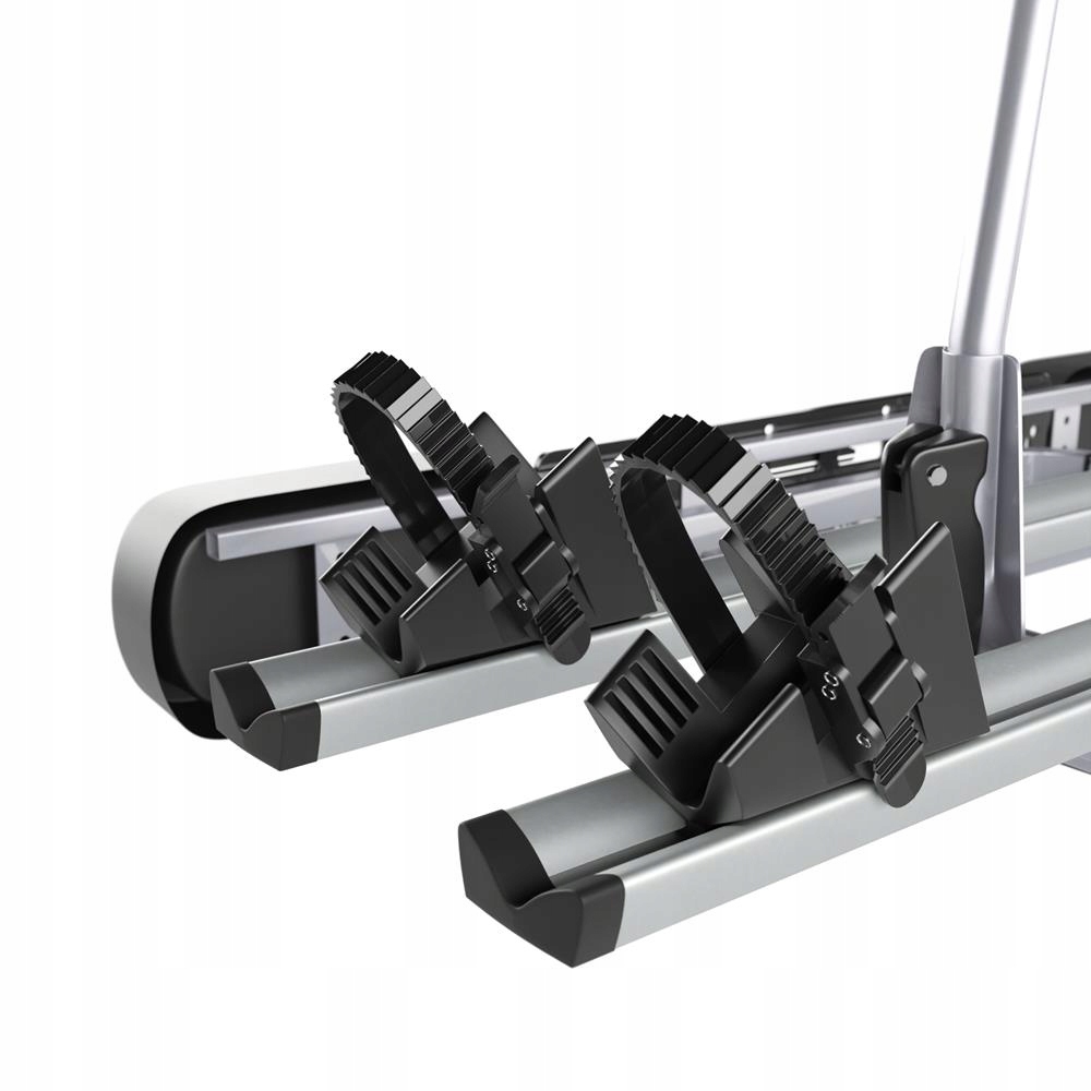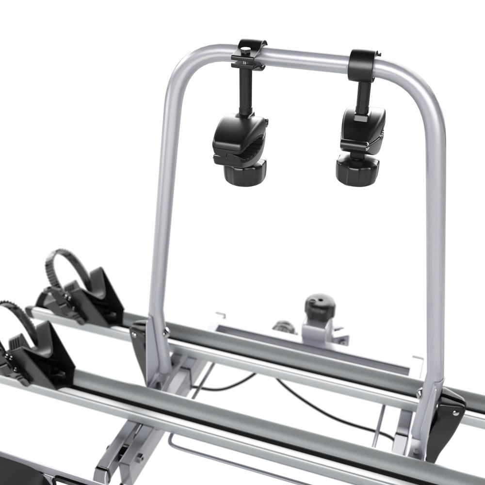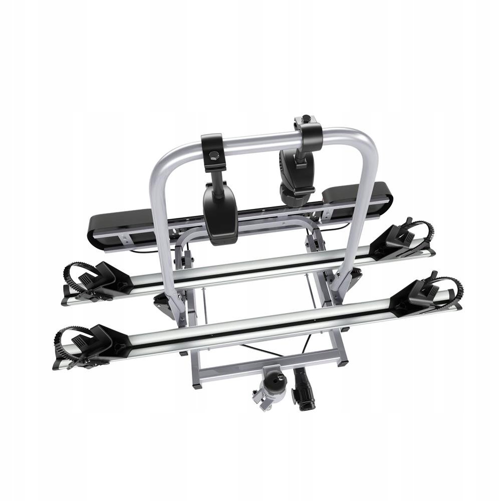 багажник дозволяє зручно перевозити два велосипеди, а міцна конструкція зі сталі та алюмінію гарантує його міцність і довговічність, а також елегантний зовнішній вигляд