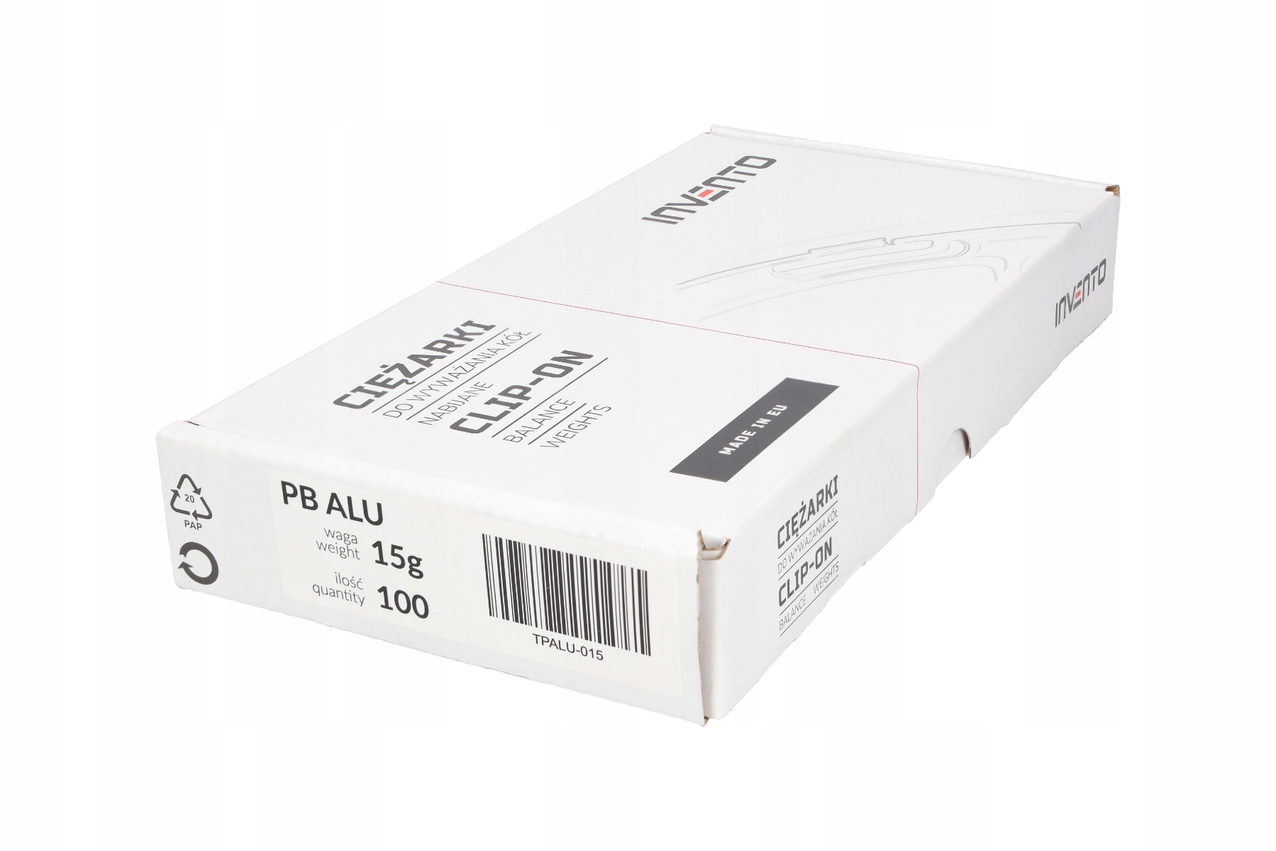 Свинцеві гирі для балансування коліс з алюмінієвими дисками марки INVENTO - оригінальні балансувальні гирі від польського виробника TIP-TOPOL. В упаковці 100 штук по 15 гр. Ваги INVENTO є ідеальним рішенням, яке гарантує точне балансування алюмінієвих дисків легкових автомобілів і мікроавтобусів. Завдяки пластичності свинцю та простоті монтажу свинцеві гирі є найпопулярнішими гирями, які використовуються в Польщі.