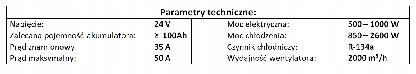 Пристрій живиться від мережі 24 В , а його установка дуже проста і не потребує втручання в електросистему автомобіля. Прилад заправлений холодоагентом і повністю готовий до роботи . Пристрій має вбудовану функцію захисту акумулятора від розряду.