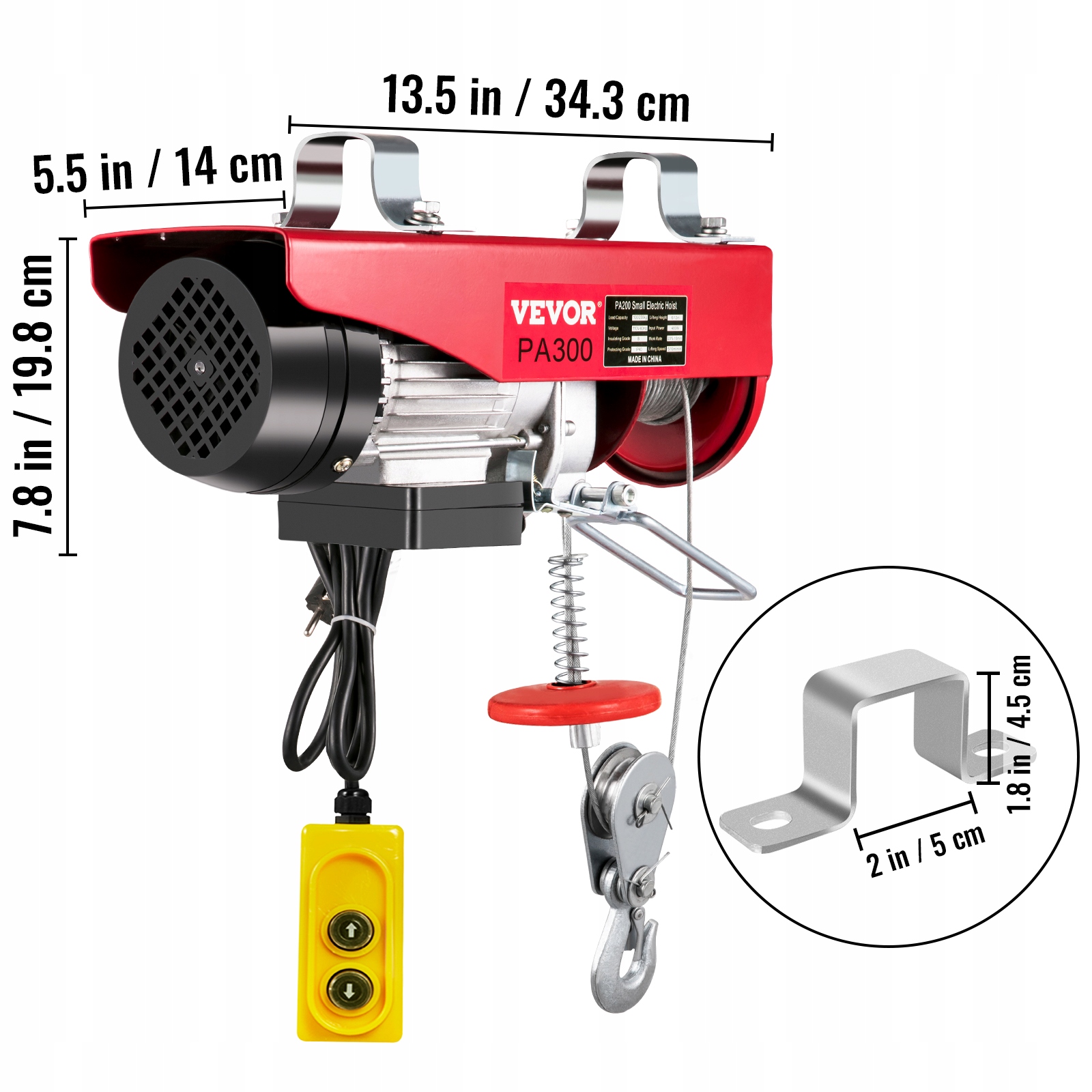 вантажопідйомність 660lbs: електрична лебідка легко піднімає невеликі двигуни, приводи або будівельні матеріали. Підтримує два режими підйому зі сталевим гаком безпеки. Продуктивність і швидкість однієї лінії становить 330 фунтів/150 кг, 32,8 футів/хв (10 м / хв). Продуктивність і швидкість подвійної лінії - 660 фунтів/300 кг, 16,4 футів / хв (5 м / хв).