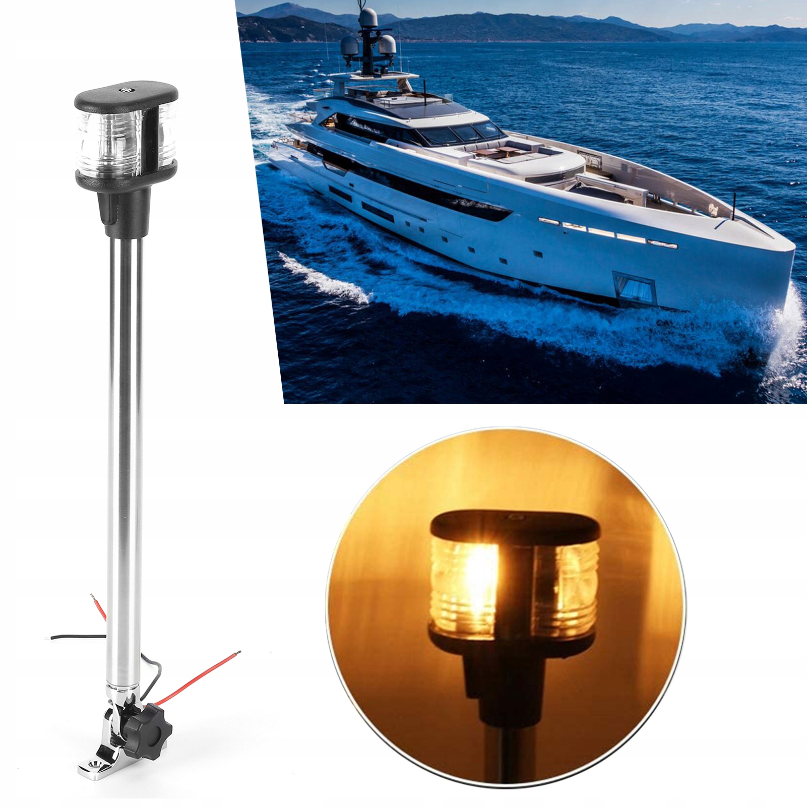 1. Можна використовувати як фари, заднє кормове світло та дальнє світло, освітлення на 360 градусів, покращуючи безпеку нічного плавання. 2. Широке застосування, підходить для більшості водних транспортних засобів, таких як яхти, туристичні автомобілі, рибальські човни, моторні човни тощо. 3. Характеристики 12 В постійного струму