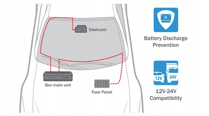 Серія DR770X Box також сумісна з усіма комплектами та акумуляторами BlackVue Parking Mode.