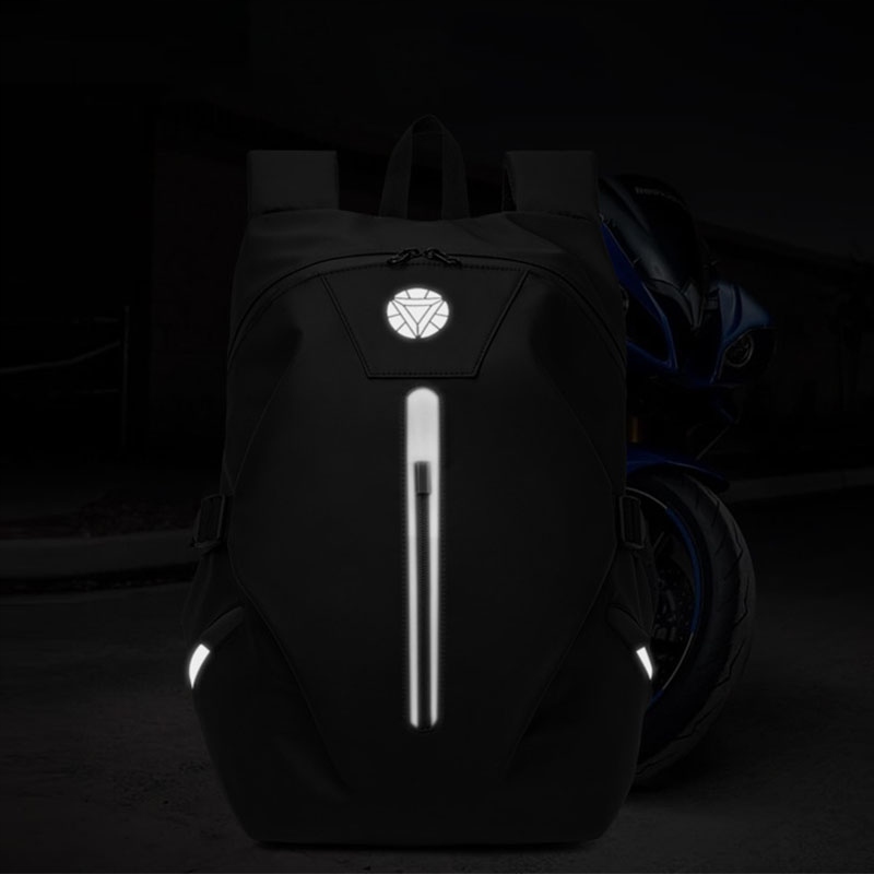 відображають панелі нічного бачення розташовані так, щоб мотоцикліст було видно на дорозі з кожної сторони. Матеріал захищає вміст рюкзака від дрібного дощу і вологи, а зовнішнє покриття легко очищається від будь-яких забруднень.