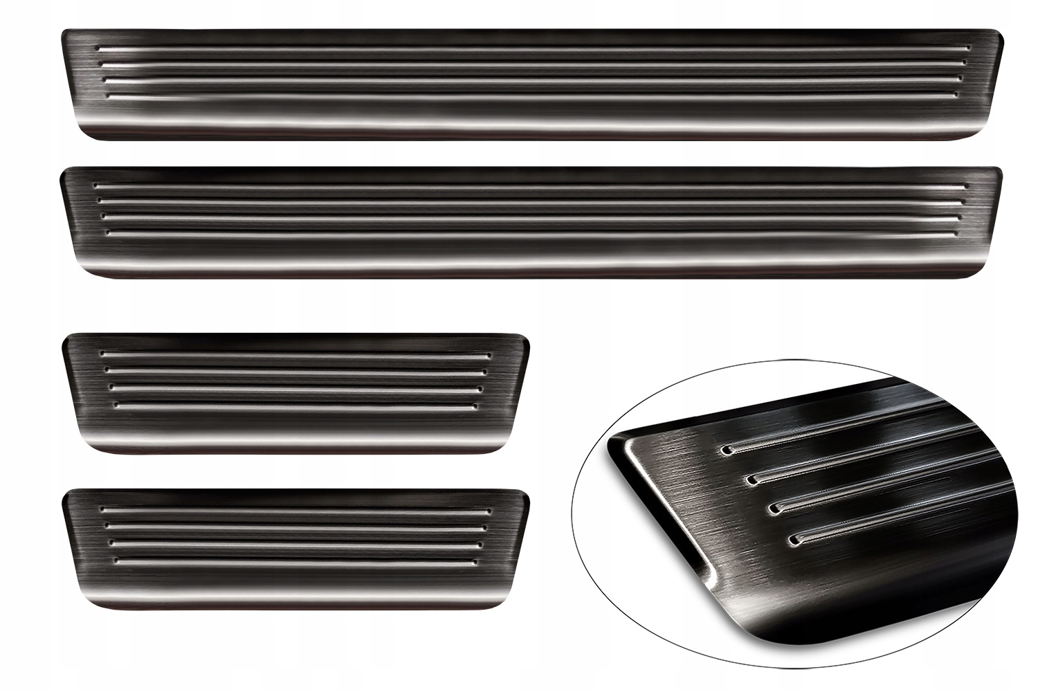 Смужки захищають фарбу на порозі автомобіля від подряпин і пошкоджень під час посадки та висадки. Крім того, вони є оригінальним і елегантним доповненням інтер'єру будь-якого автомобіля.