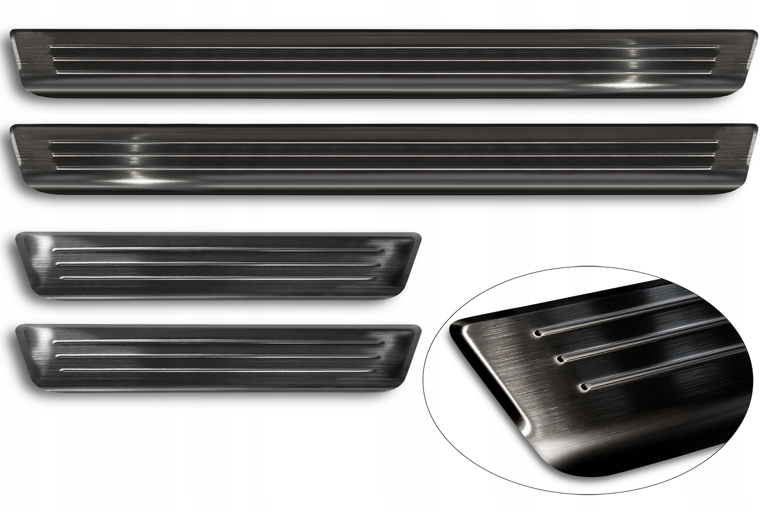 Смужки захищають фарбу на порозі автомобіля від подряпин і пошкоджень під час посадки та висадки. Крім того, вони є оригінальним і елегантним доповненням інтер'єру будь-якого автомобіля.