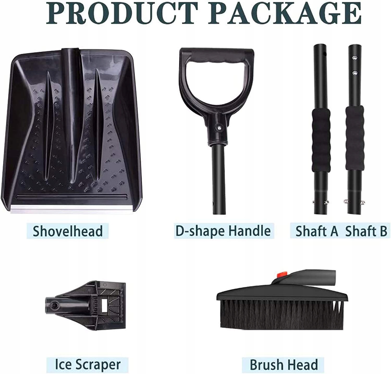 Набір для прибирання снігу 3 в 1, в комплект входить 3 снігоприбиральні пристрої, скребок для льоду завдяки своїм губкам видаляє найтвердіший лід і сніг, не залишаючи подряпин. Snow Brush Обертається на 360 градусів щітка з густою щетиною допоможе швидко видалити сніг з лобового скла автомобіля. до снігу, викопуючи машину зі снігу ботом. Легкий, але міцний набір для прибирання снігу. Алюмінієві вали та структурно посилені ковпаки з АБС стійкі до низьких температур 86-30 C і достатньо міцні, щоб справлятися з товстим льодом і глибоким снігом. Стійке лезо ПП з алюмінієвою кромкою, що витримує великі навантаження, м'яка щетина снігової щітки не дряпає фарбу автомобіля. Ідеальний розмір і ергономічний дизайн D-подібна ручка-губка зменшує тиск при копанні снігу, захищає зап'ястя і запобігає ковзанню руки. Дві алюмінієві ручки можна знімати, тому ви можете регулювати довжину лопати для снігу від 80 до 100 см, щітки для снігу та скребка для льоду від 40 до 90 см, що забезпечує найкращий важіль залежно від ваших потреб і легко запакувати коли не потрібно. Легко збирається та переноситься Портативний комплект лопат для снігу з висувною ручкою можна легко встановити за лічені хвилини та легко зберігати, не займаючи місця. Ви можете зберігати його в багажнику автомобіля, шафі, домашньому офісі або будь-де в дуже невеликому просторі. Багатофункціональне використання Цей набір лопат для снігу ідеально підходить для вашого автомобіля, кемпінгу, інших заходів на свіжому повітрі, надзвичайних ситуацій або навіть для створення сніговика з вашою родиною. Коли ви виходите на вулицю і стикаєтеся з льодом і снігом, він може стати відповідним помічником для прибирання снігу з дорожнього покриття. Ідеальний аксесуар для вашого автомобіля, вантажівки, позашляховика чи транспортного засобу для відпочинку.