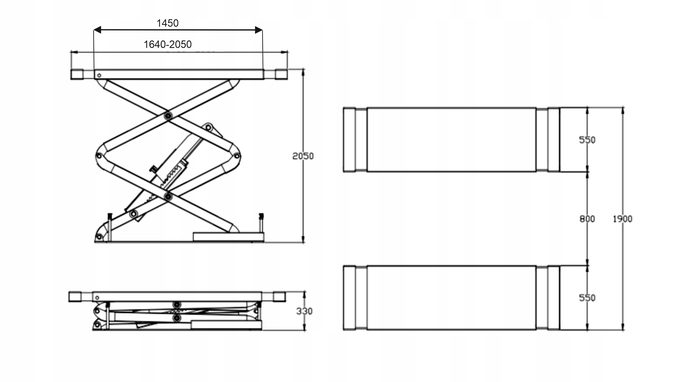 Платформи: 550 x 1450-2050 мм