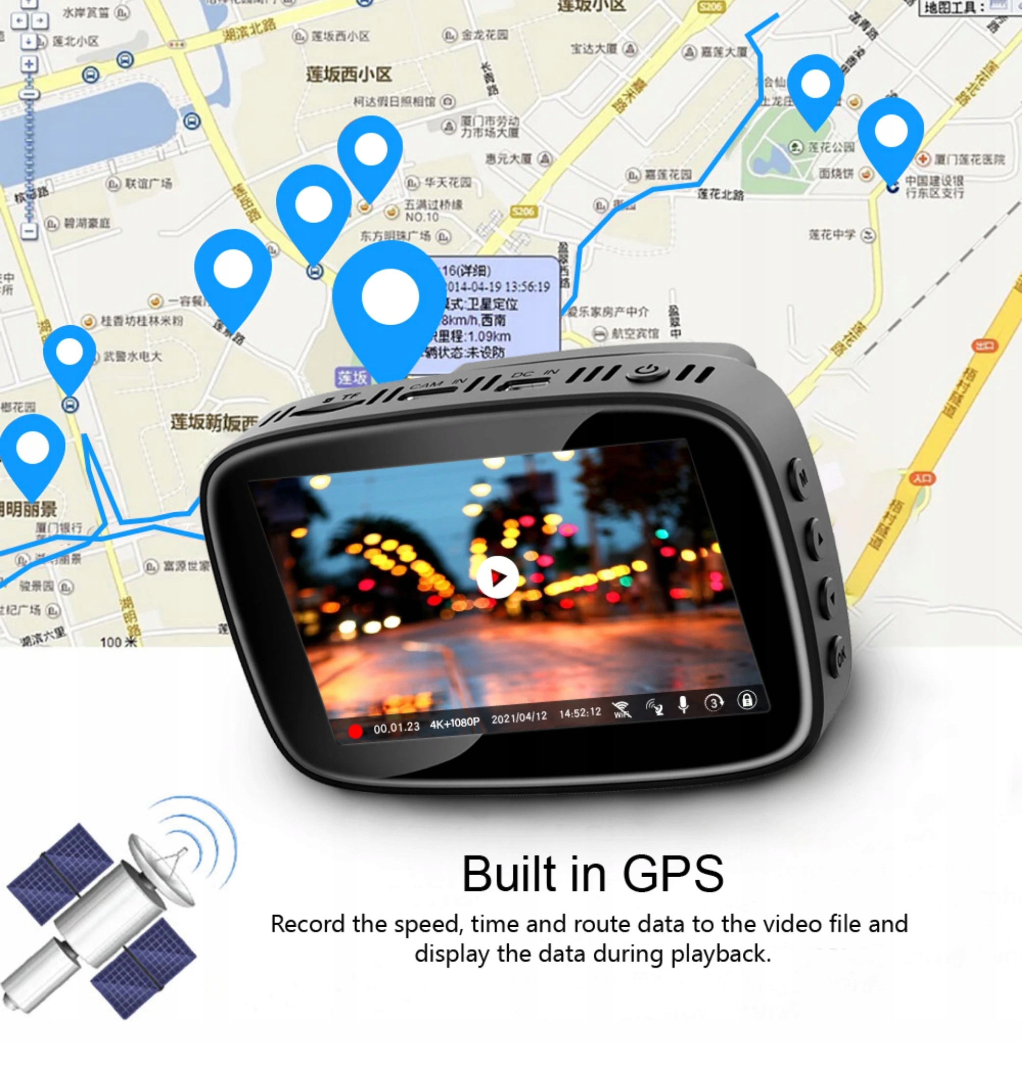 Функція: НІЧНЕ БАЧЕННЯ, ПОВНИЙ КОЛЬОР, G-сенсор, вбудований WiFi, виявлення руху, керування через APP, вбудований GPS, вбудований акумулятор